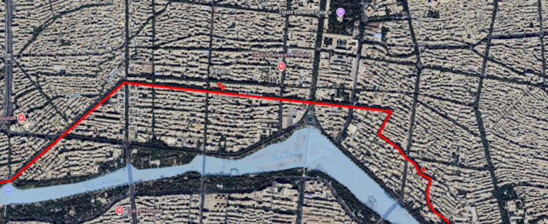 The Niasarm Canal, one of Isfahan’s largest canals, starts near Marnan Bridge, passes through the Lanban district, and runs east across the city, almost parallel to the Zayande Rood River. With more water and green space than other canals, it is the city’s most popular blue and green area, surrounded mostly by residential land, while key commercial areas are at Charbagh Street.