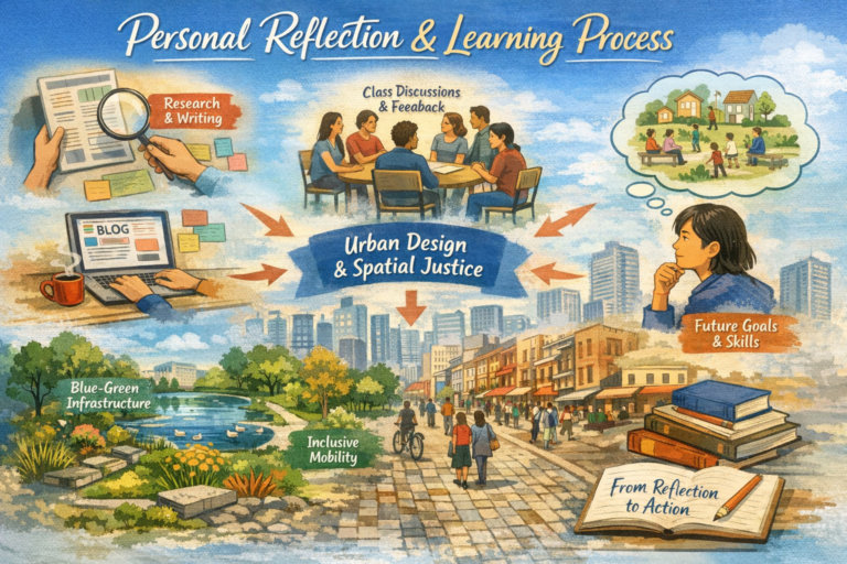 Blogging for TCP8090 has been a very rewarding experience. It helped me connect theory from readings and lectures to real cities, reflect on my learning, and understand the role of urban designers in creating fair, inclusive, and sustainable spaces. I also learned useful skills in writing, research, and digital storytelling. This experience has made me more aware of my responsibility as a designer to think about justice, inclusion, and sustainability in every project, and it will guide me in my future work in urban design.